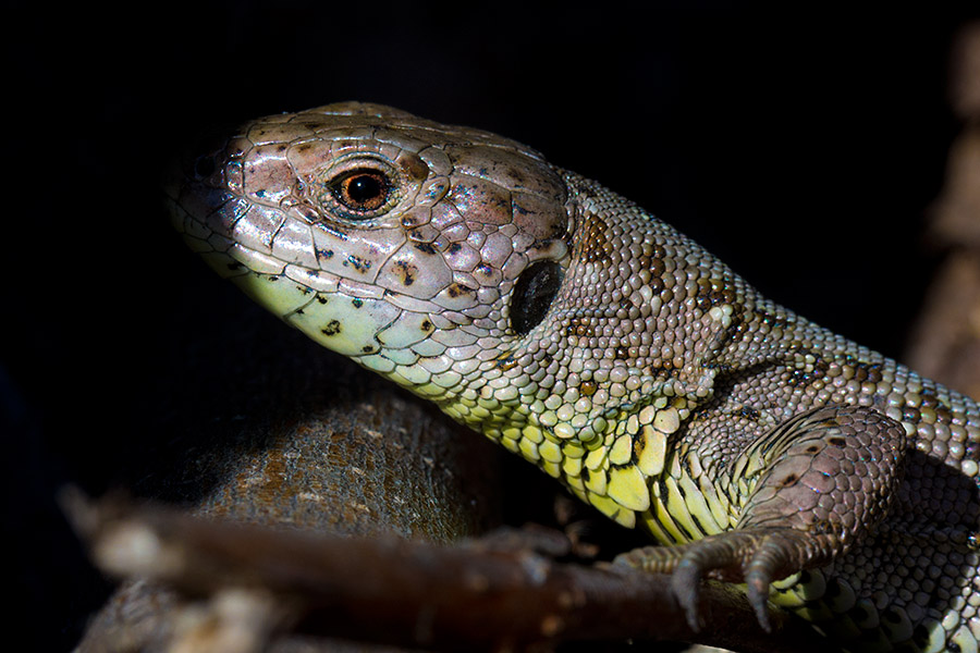 Schon die Wächter am Eingang des Gebietes zeigten sich farbenfroh, wohl eine Zauneidechse im prallen Sonnenschein, halb in