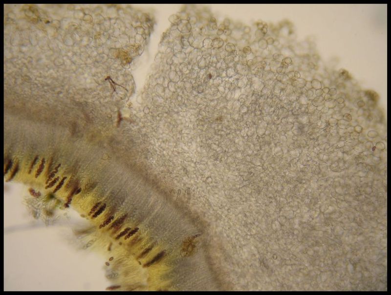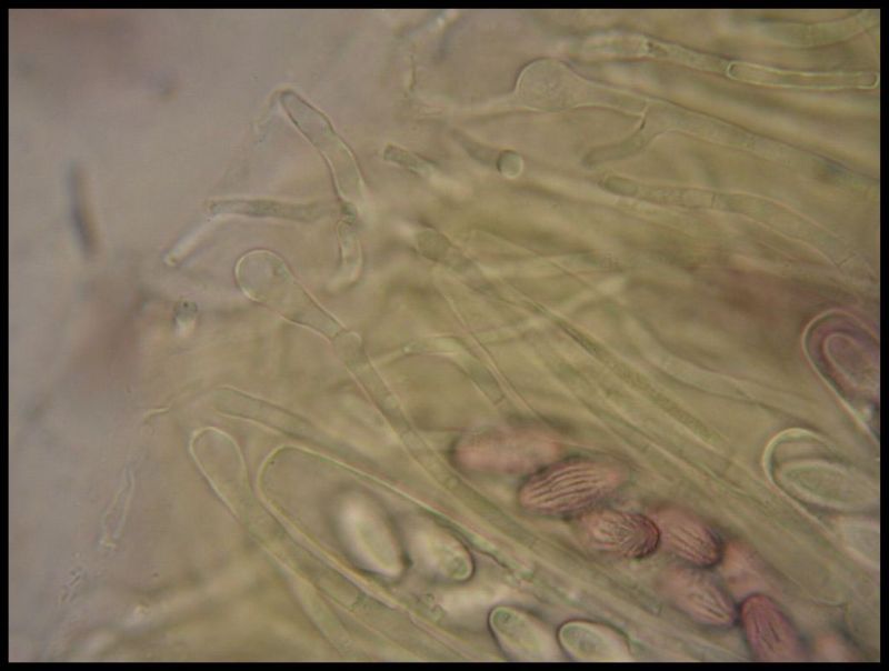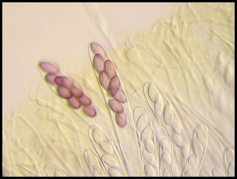 Guten Abend, mein Taubendung im Fichtenwald blüht! Habe heute eine Ascobolus-Art gefunden. Bin aber mit der Bestimmung "etwas" überfordert. Kurze Beschreibung: Fundort: Auf einem mit Taubendung bestreuten, morschen Fichtenast, zusammen mit Pseudombrophila petrakii. Apothecien flach Schüsselförmig, jung zitronengelb, bei Sporenreife gelbgrünlich/oliv, bis 6 mm Durchmesser. Mikromerkmale: Sporen ellipsoid, längs gerieft, reif stark violett, 19 x 9 µm, gemessen im Asci, da nur vereinzelt freie Sporen, die bis 20 x 10 µm groß. Asci bis 230 µm lang, 8 sporig, IKI - Paraphysen fädig, septiert, tlw. mit Auswüchsen bzw. einige gegabelt, bis 4 µm dick, Spitze oft verdickt unterhalb der Fruchtschicht eine dünne Schicht textura epidermoidea?, ansonsten textura globulosa bzw. angularis (da fehlt mir die Erfahrung). In der Monographie von van Brummelen bin ich bei Ascobolus roseopurpurascens hängen geblieben. Ich bin mir da aber keinesfalls sicher... Viele Grüße
