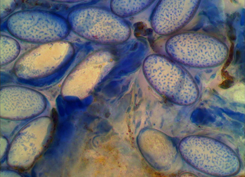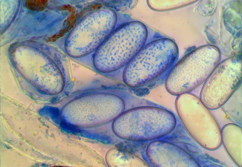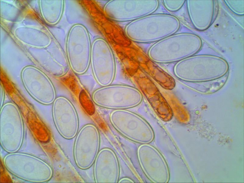 Sporen [95% • 14 • • v • H2O(nat) ] = 25,6 - 26,7 - 27,8 x 13,2 - 13,7 - 14,2(14,3) µm Haare 300µ-800µm x 21µm-45µm LG Hartmut