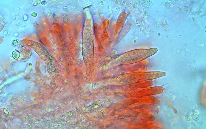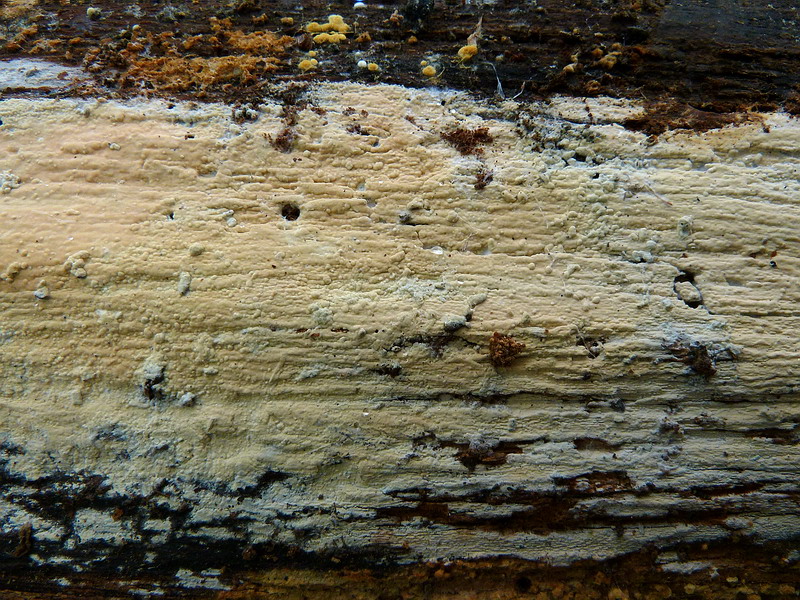 Liebe Pilzfreunde mitten in die Morchelzeit wieder so ein furchtbares rindenpilzähnliches Teil, welches wohlmöglich wieder keinen interessiert. Trotzdem muß es sein, denn Harzi ist auf Namenssuche. Wie ich nun gelesen habe, wenn es die Gattung Gloeocystidiellum ist, muß ich die Frage nach Schnallen ja nein noch beantworten. Vorab trotzdem eine m.E. markante Mikromerkmale, vielleicht erkennt jemand diesen Pilz. LG Hartmut