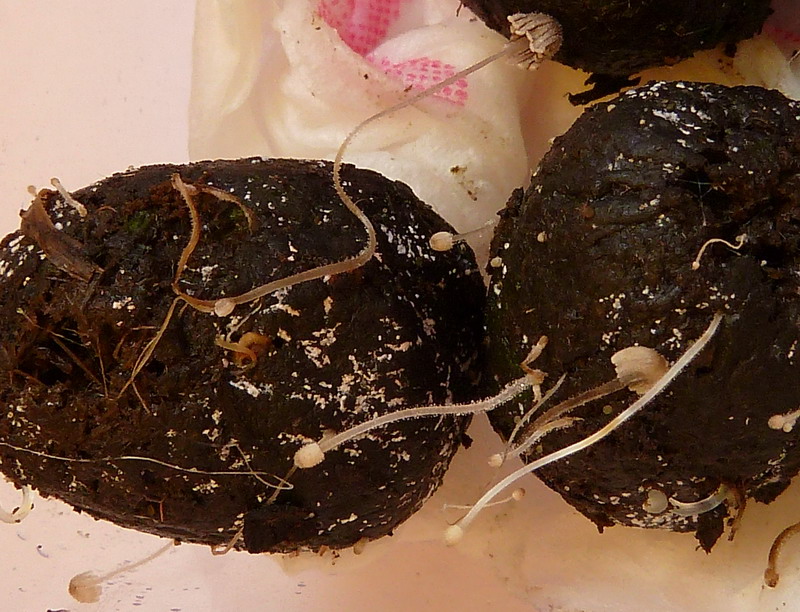 Liebe Pilzfreunde Torsten Richter schickte mir Rehköddel aus Mecklenburg mit einen seltenen Ascos drauf, namentlich Pseudombrophila cervaria. Jedoch sie waren flüchtig, ich habe nur Ascobolus drauf finden können. Ein paar Tage in der Feuchtbüchse allerding nun diese winzigen Tintlinge hier: