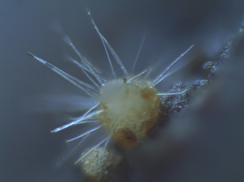 der vorläufige Arbeitsname wäre für mich: Trichobolus spec. Ich habe leider nur DOVERI und keine Monographie, deshalb bin ich auf Expertenmeinungen gespannt. Die Sporengröße liegt zwischen T. sphaerosporus und T. zukalii, die zwei Arten (vielsporig) nur sind im DOVERI enthalten. LG Hartmut