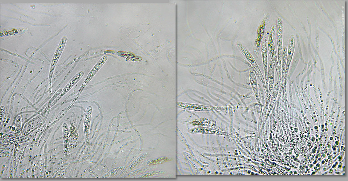 Und schöne, wie Würstchen geformte Sporen, gelegentlich auch mit Tröpfchen: