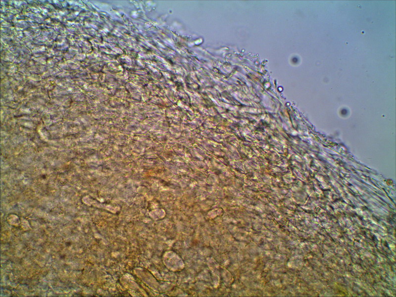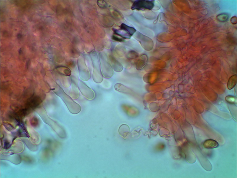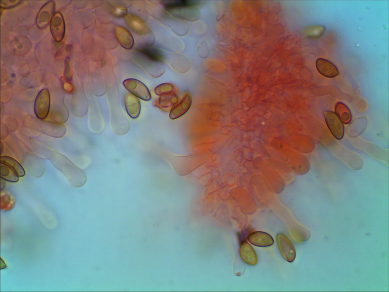 Also nachdem ich Agrocybe und Pholiota fallen gelassen habe, bin ich guterletzt auf die Gattung Hebeloma gestoßen. Passend wäre die Sporenform und Zystidenform, Sporen ohne Keimporus und nicht dickwandig. Was nicht paßt, die Sporen sind m.E. glatt, in KOH sehe ich kein Ornament, und der Geruch ist angenehm pilzig, nicht mehlig, kakaoartig noch rettichartig. Eine passende Hebeloma Art habe ich auch nicht zu bieten, vielleicht bin ich derweil wieder auf den Holzweg, oder? LG Hartmut