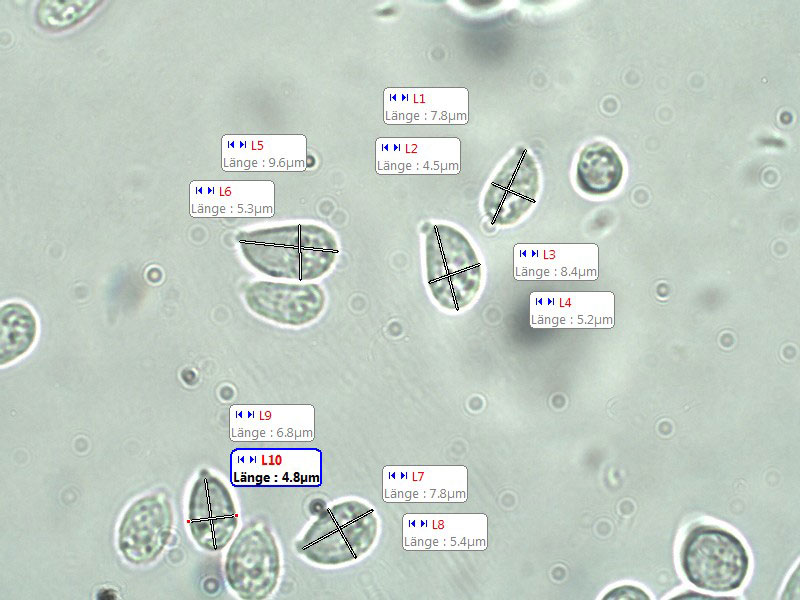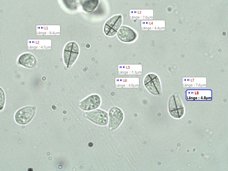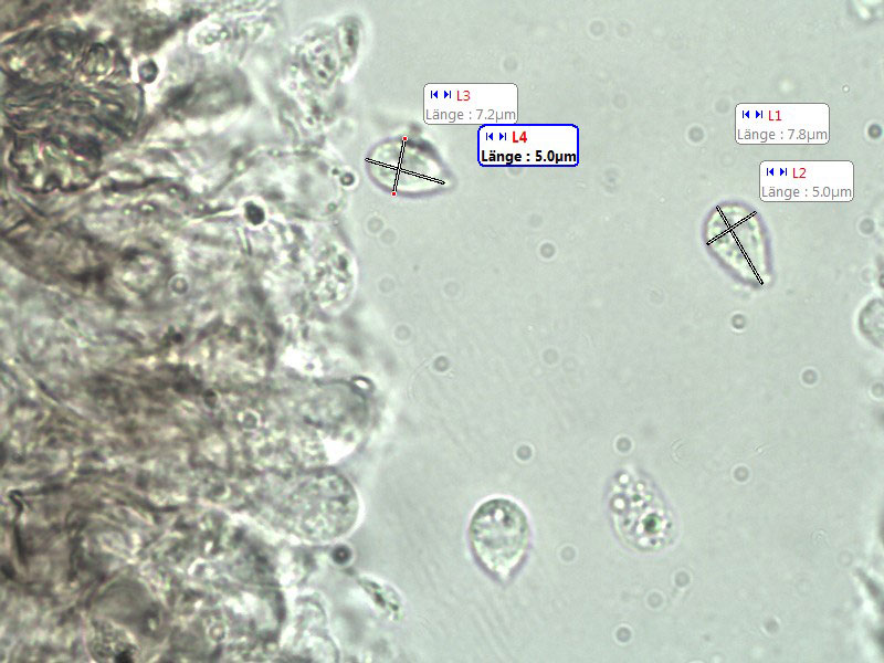 Die Pilzchen stehen auf einer kleinen Magerwiese mit drei Apfelbäumen und einigen Schlüsselblumen. Sie sind 20 mm hoch und die Hutbreite beläuft sich auf 10 - 16 mm im Durchmesser. Der Stiel ist zirka 2 mm dick. Sie bleichen in der Sonne rasch aus, wo sie nicht durch Grashalme abgeschirmt sind. Die Pilzchen scheinen hygrophan zu sein. Das Sporenpulver ist weiß bzw. weißlich.