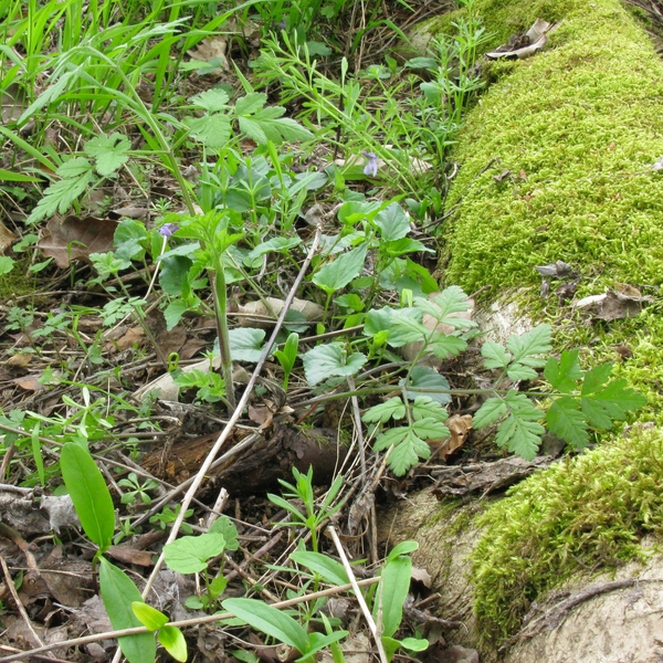 Es ist eine “gestörte” Stelle im lichten Eschenwald, wo sich vor undenklichen Zeiten (vor mindestens 40 Jahren) eine Brunnenstube oder dgl. befand. An Begleitflora findet sich in Massen Manns-Knabenkraut (Orchis máscula) und Große Sternmiere (Stellaria holostea)