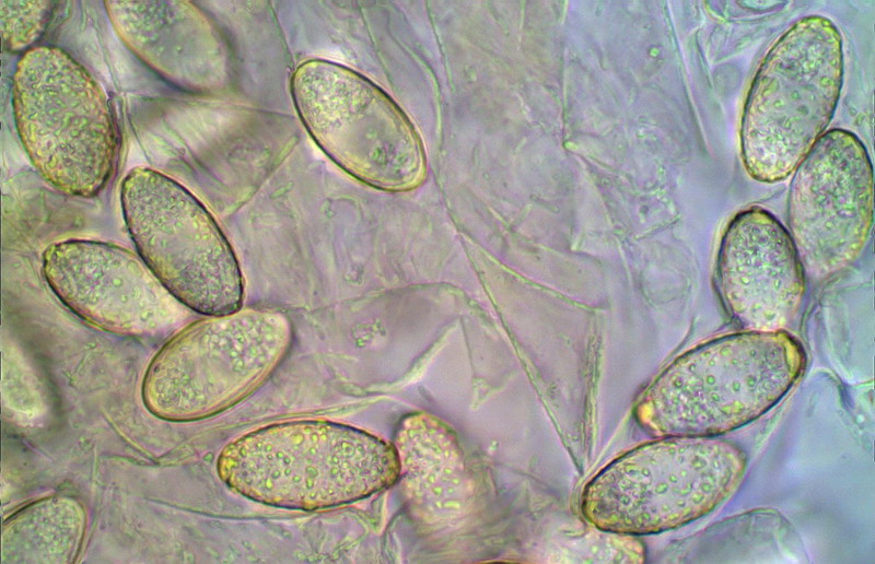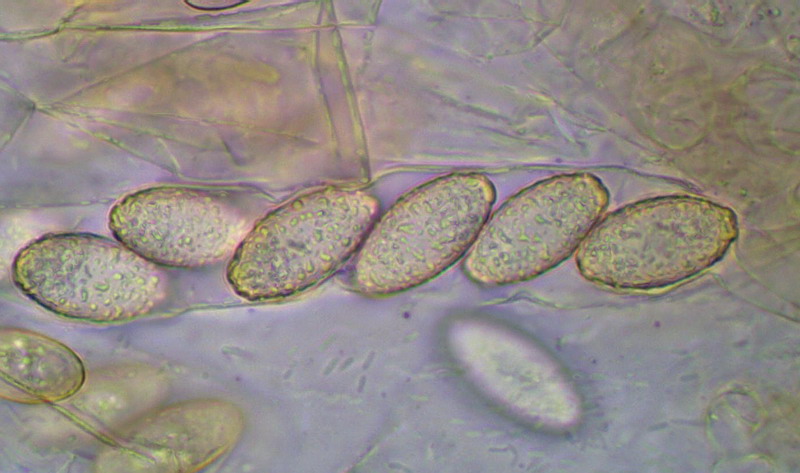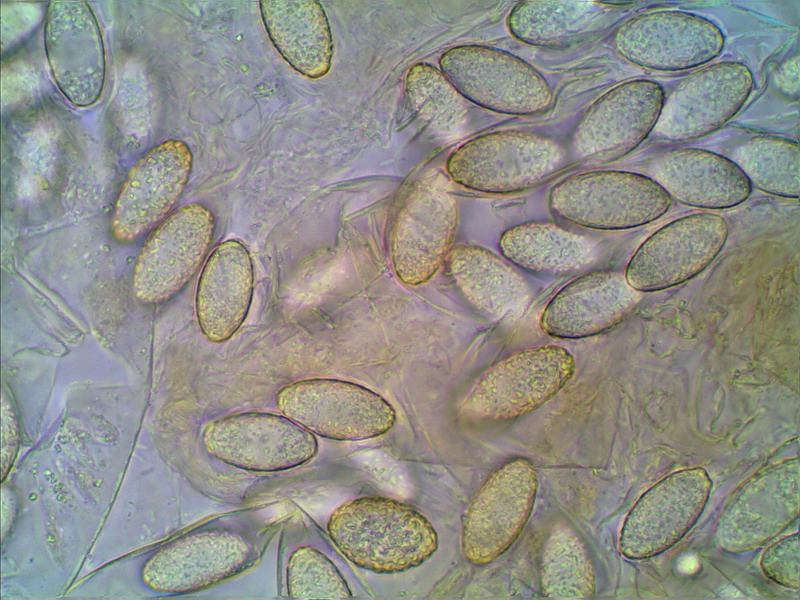 Esrt einmal vielen Dank fürs Schicken! Nach 5 Tagen !! Postweg kam der Pilz leider verflüssigt an und ich konnte nur noch nach den Sporen schauen. Und das hat sich gelohnt. Ob man anhand dieser markanten Sporen den selten Peziza polaripapulata festschnüren kann, will ich hier vorab hinterfragen. Auf alle Fälle gehört dieser Becherling zu den pseudoapiculaten Arten, Vergleiche im Netz bestärken mich in diesen Arbeitsnamen. Weitere Bilder und Vermessungen werden nachgereicht. LG Hartmut