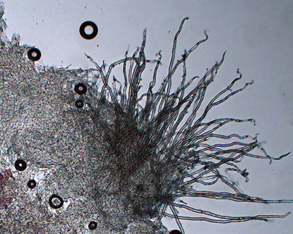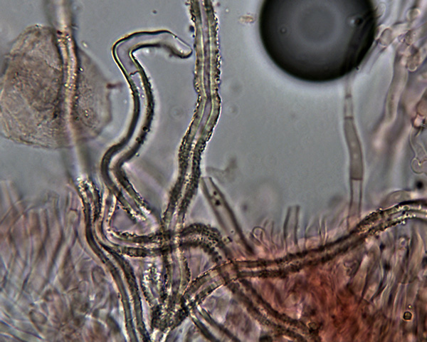 Ich bin noch nichtmal sicher, ob die Spore auf dem ersten Link unten zum Pilz gehört.