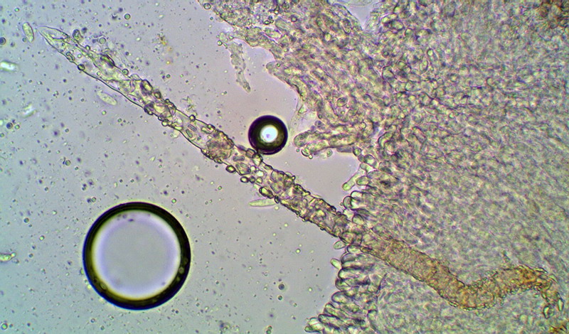 ... mit einem hoffentlich interessanten Rindenpilz, man kann die Zystiden schon förmlich riechen