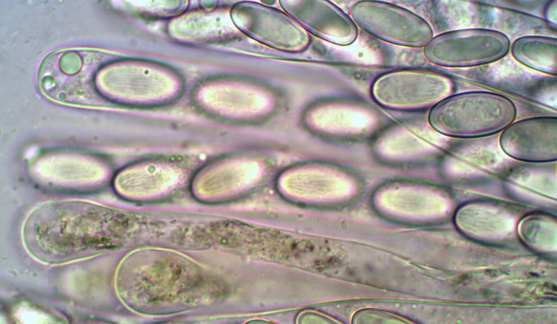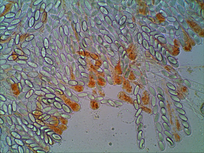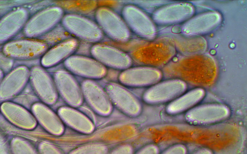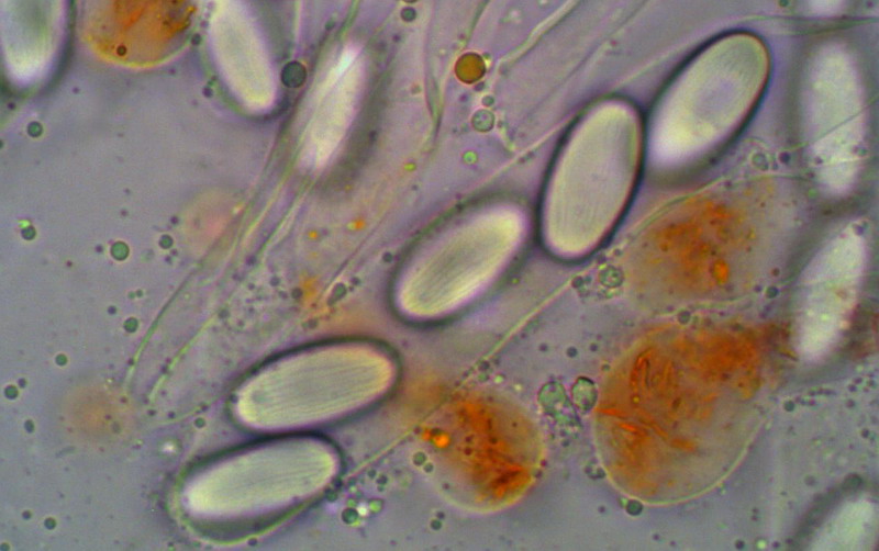 Kenne ich eigendlich nur auf Kuhfladen, aber nach einigen Rumrätseln und Literaturwälzen komme ich zu keinen anderen Ergebnis. Was mir dieses mal auffällt, die Sporen sind fein längst gestreift. In Baumwollblau konnte ich das nicht besser sichtbar machen. Die Paraphysen stark keulig verdickt. Kann der Pilz bestätigt werden?