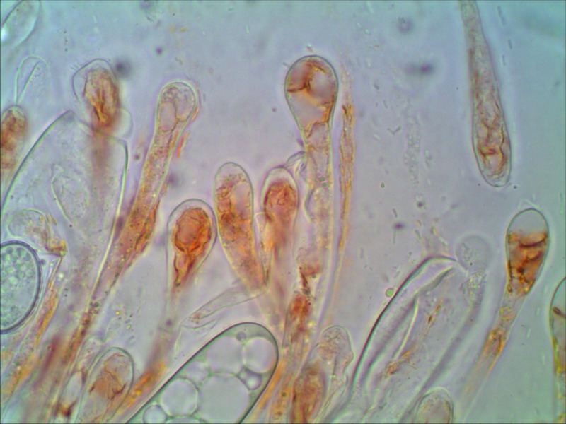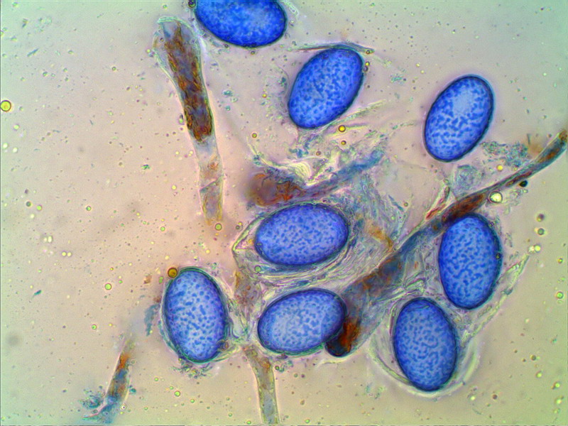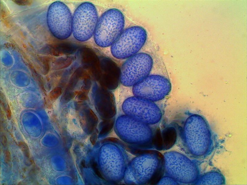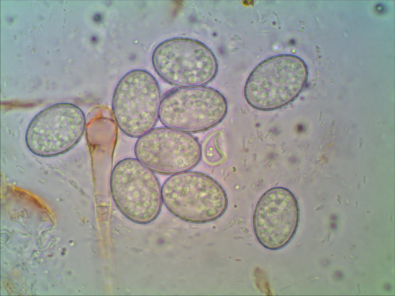 Liebe Pilzfreunde so habe ich diesen Fund vorerst abgelegt. Die relativ großen Sporen, deutliches Ornament und kurze Haare mit einfacher Basis führten mich dorthin. Scutellinia kerguelensis ist oder war auch eine Option, die kenne ich aber etwas anders, mit sehr schwachen Ornament und noch kleineren Q-Wert. Gerne lasse ich mich aber umstimmen. Fundort Eggeröder Brunnen in einem Bachtal Esche, Ahorn. auf nassen Laubholz direkt im Bach.