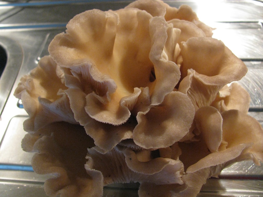 Diesen Pilz habe ich heute an einem Buchenstamm ( liegend ) gefunden .