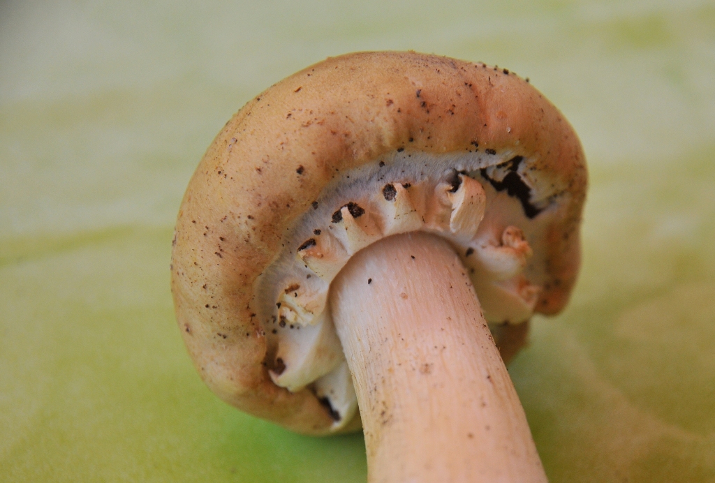 An alle, die sich etwas intensiver mit der Gattung Agaricus befassen: wir haben hier einen Fund, der noch am ehesten aber doch nicht so recht zu A. fissuratus passt. Von einem Sammler wurden ca. 10 Fruchtkörper in allen Entwicklungsstadien vorgelegt, weitere sind am Fundort verblieben. Standortfotos werden so bald wie möglich nachgereicht. Die Pilze rochen nicht nach Anis, hatten keine rissige Huthaut, waren gleichmäßig gefärbt, die Huthaut ließ sich vom Rand ca. 1 cm weit abziehen, das Fleisch verfärbte sich nicht. Einige Meter vom Fundort entfernt wuchsen Schaf-Champignons in normaler, deutlich nach Anis riechender, gelb verfärbender Ausprägung. Der Finder bereitete einige Pilze von beiden Kollektionen getrennt zu und stellte einen signifikanten Geschmacksunterschied fest. Die cf. fissuratus schmeckte weit weniger gut als arvensis. Wer interessiert sich für diesen Fund, wer kann etwas dazu anmerken? Viele Grüße Michael
