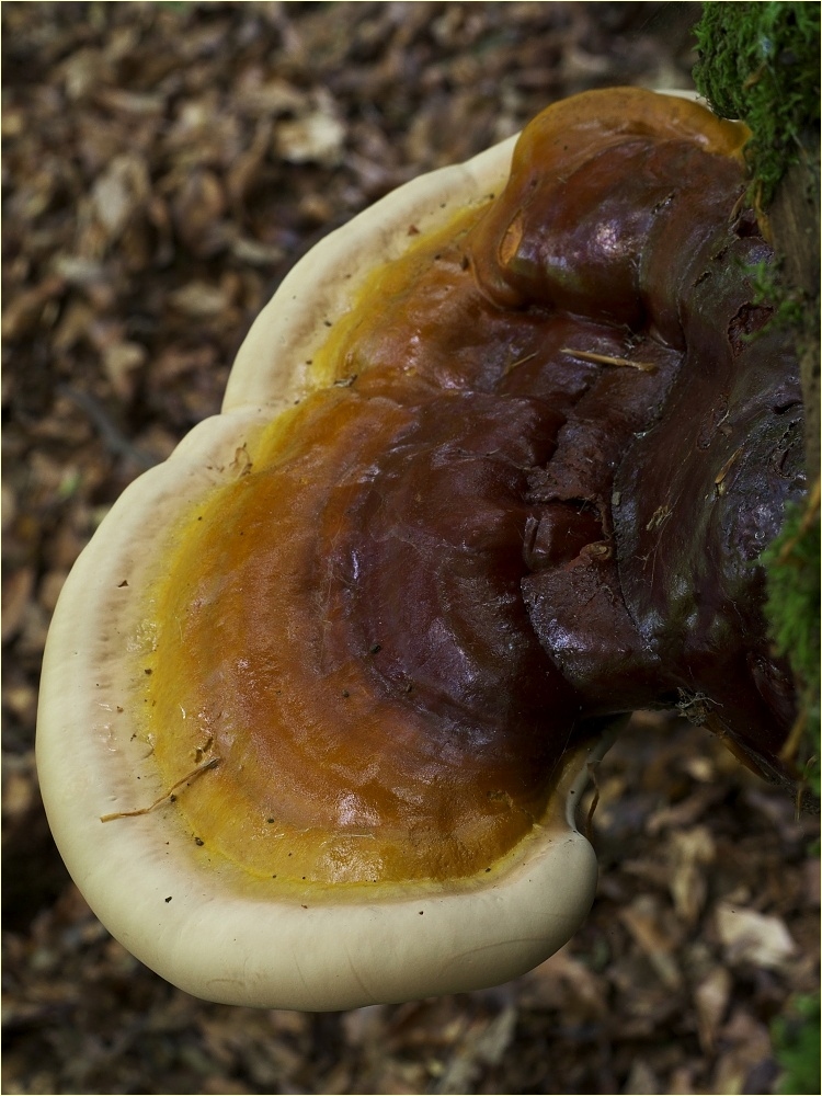 In den letzten Jahren wuchsen an dem liegenden Hainbuchenstamm Ganoderma pfeifferi. In diesem Jahr sehen sie eher nach G. lucidum aus aber so frisch hatte ich sie bislang nicht gesehen.