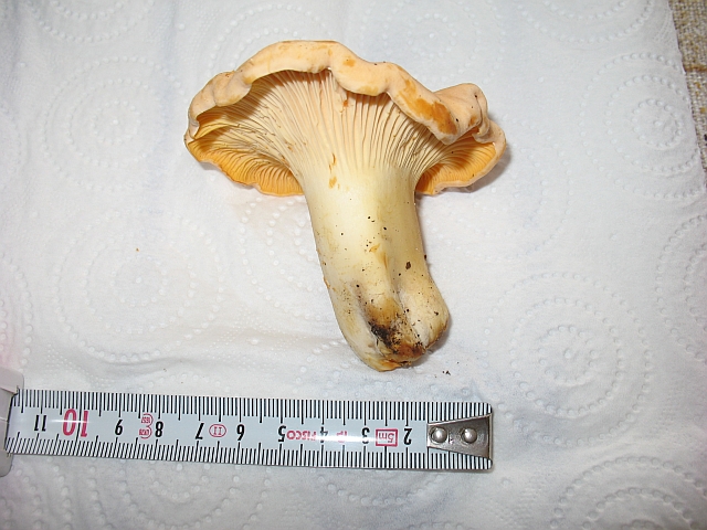 Hallo Pilzgemeinde, anfangs der Woche ging uns unter Anderem dieser stattliche Pfifferling ins Körbchen, ca. 8 cm hoch, Hutdurchmesser ebenfalls ca. 8 cm, Gewicht 45 Gramm.