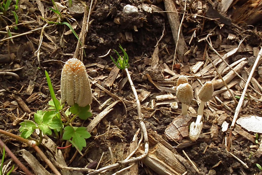: p.s.: Ein kleiner Waldbrand wär nicht schlecht:-) Hallo Ihr beinahe Pyromanen ;-) vielleicht wären die Sonnwendfeuerplätze nach den starken Niederschlägen doch optionale Fundstellen? Trotz Sonne und Wind... sind die Böden im Moment noch quatschnass, und das hohe Gras spendet Schatten. Könntet Ihr mir noch einen Tintlingstipp geben, siehe Foto? Die Hübschen fand ich vergangenen Sonntag am Rande einer zugewachsenen Windbruchstelle. Man hat dieses Frühjahr zwischen dieser zugewachsenen Brache (Gräser, Stauden, niedrige Büsche/Jungbäume) und dem daneben stehenden mittelalten Fichtenbestand einen Weg gefräst. Wie man sieht, liegen dort alle möglichen Häckselabfälle. Ich schwanke zwischen popeligem Coprinus domesticus und C. flocculosus. Grüße - Rika