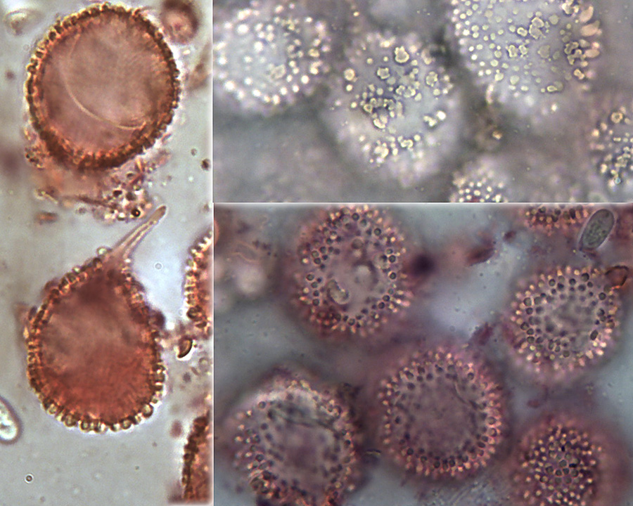 Zystiden der Basalscheibe und Sporen (8-9x4,5-5µm):