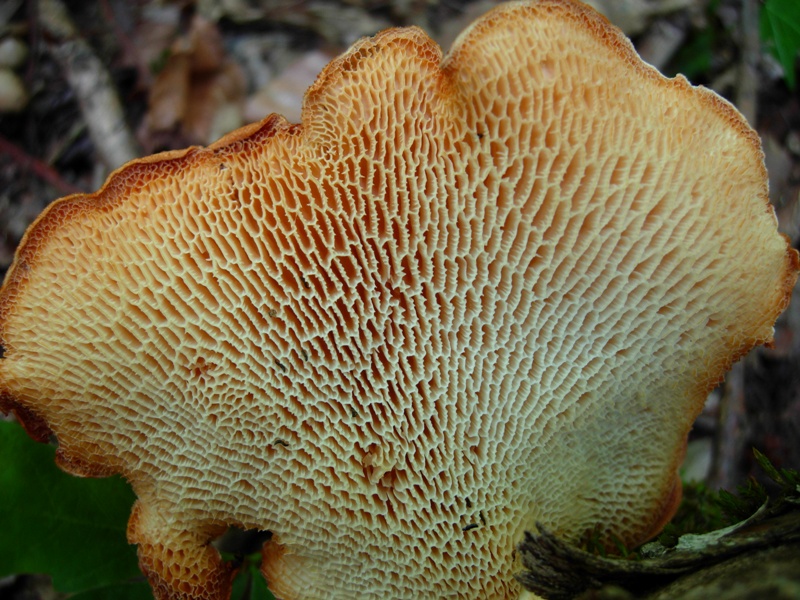 Was ist denn das für ein Pilz der von unten so schön aussieht? Hab auch noch ein Bild von oben aber bei der markanten unterseite dürfte das doch überflüssig sein, oder nicht? Auf morschem Laubholz.