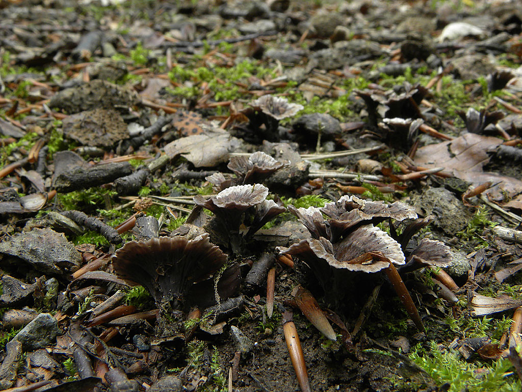 Da können wir nur vermuten, evtl. Thelephora caryophyllea - Trichterförmiger Warzenpilz?