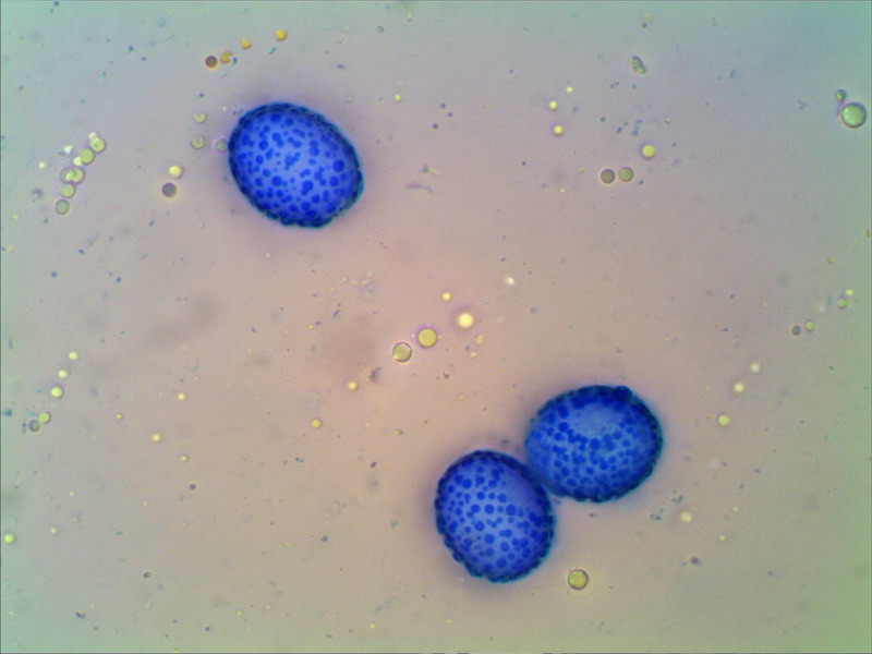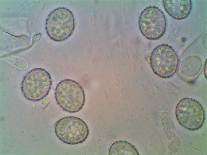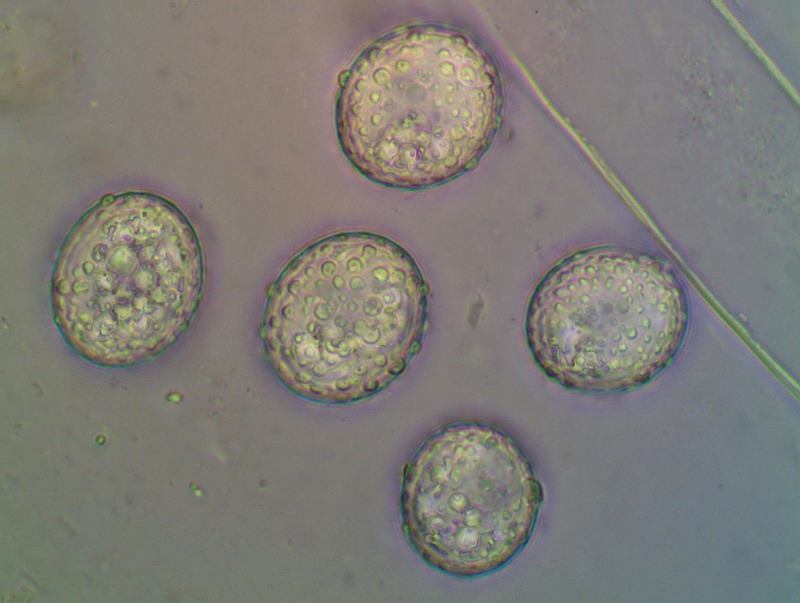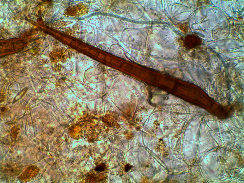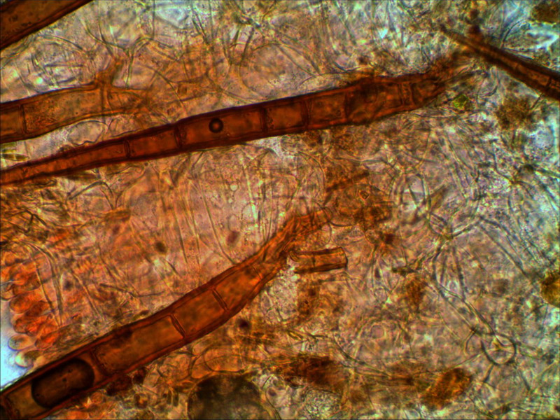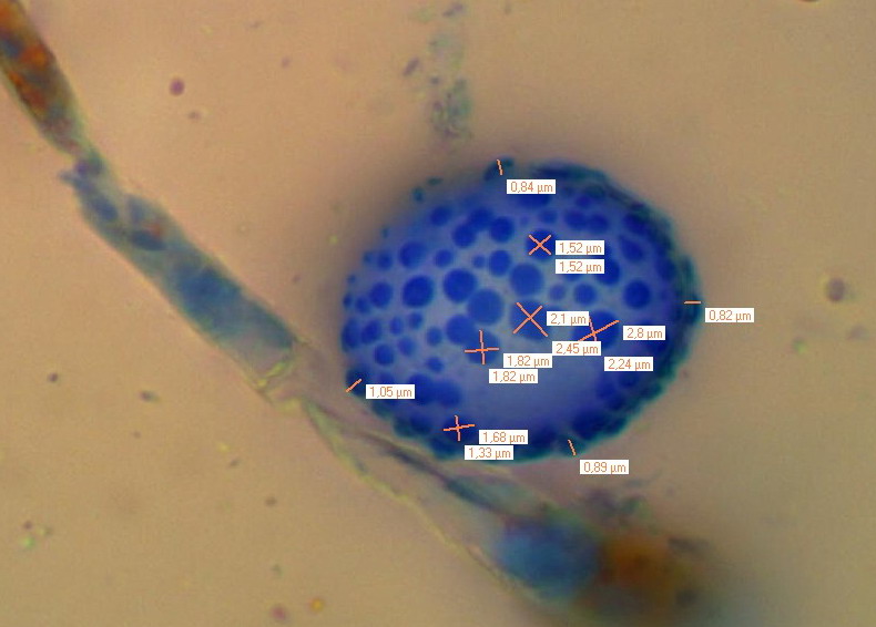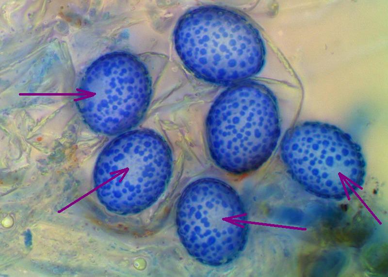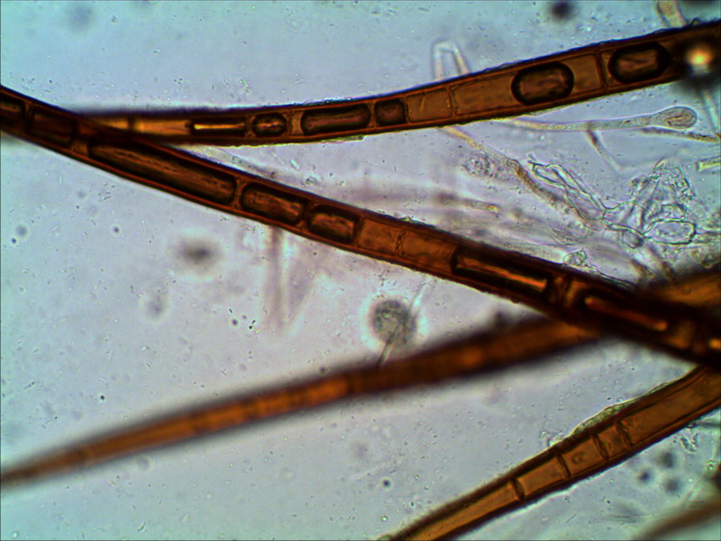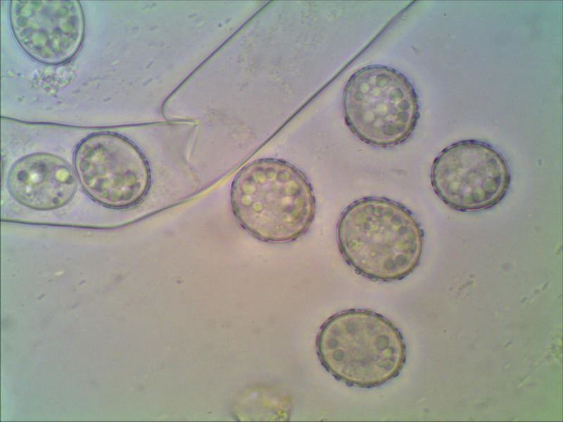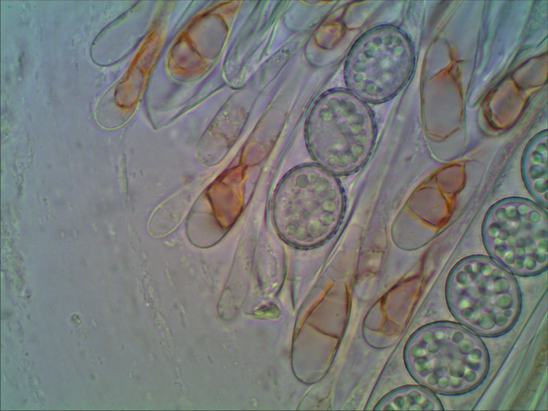 Q - im Mittel 1,2 somit dürfte, auch wegen den einfachen Haarbasen, Scutellinia umbrorum etwas fraglich zu sein. Auch für minor halte ich die Pilze nicht, denn die Sporen sind bei minor fast rund und man muß sich schon Mühe geben, einen Unterschied zwischen Länge und Breite zu finden. Weiterhin auffällig sind die völlig identischen Ornamentierungsfehlstellen an fast allen Sporen! Solche Sporen fand ich wiederum auf REM Foto in der Scutellinia Monographie von Schumacher Abbildung 163 - Seite 71 Die Höhe der isolierten dicken Warzen ca. 1µm und um die 2µm im Durchmesser.