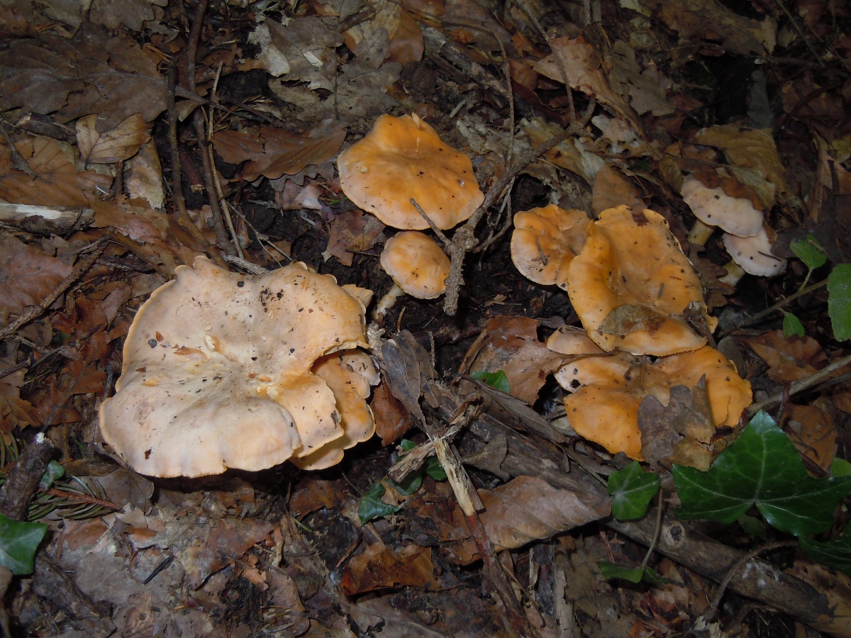 Eierschwämmche sind seltene Gäste in meinem Hauswld, aber wenn, dann ziemlich groß (bis 10 cm Durchmesser) und diesmal auch reichlich. Diese hier wuchsen gleich neben dem Steinpilztrio von vorher rund um einen Hainbuchenstrunk.