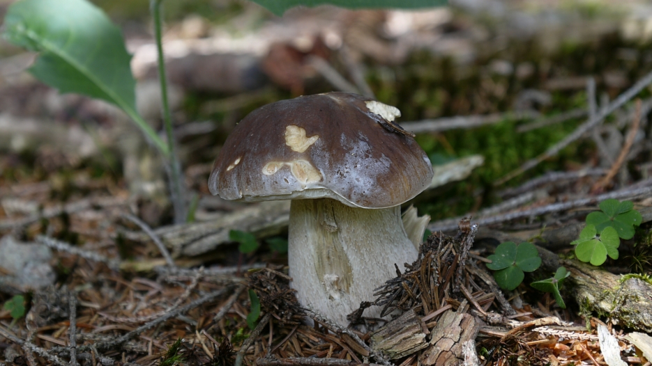 Sehr vereinzelt gesellen sich jetzt Steinpilze dazu.