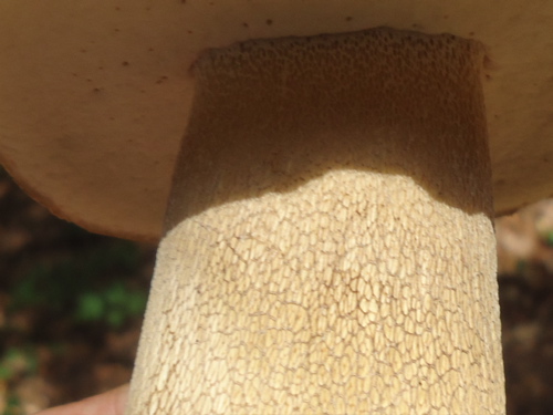 Hier die erwaehnte Netzstielzeichnung die weisse unter dem Hutrand ist für mich der Steiniindikator.Sorry für die Unschaerfe habe keine Macroeinstellung.LG Hans (Netzzeichnung,von weiss bis braun schwarz aber Galli haben bei mir immer dünne Stiele.)