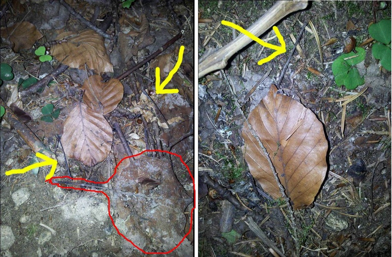 Hallo Andreas, was Du hier mit gelben Pfeilen markiert hast, sind keine Eschenblattstiele, sondern die etwa buchenblattgroßen abgeflachten Blattstiele einer Espe. Auf dem linken Foto ist ein stark vermodertes Espenblatt mit dem noch anhaftenden Stiel zu sehen. Gruß - Schnuffel