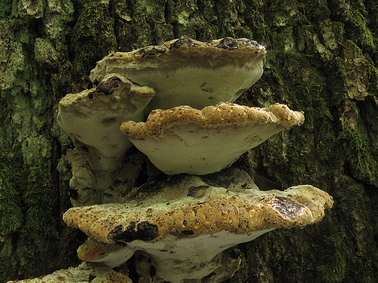 : Diese Guttationstropfen können so gut wie alle größeren Porlinge bilden.