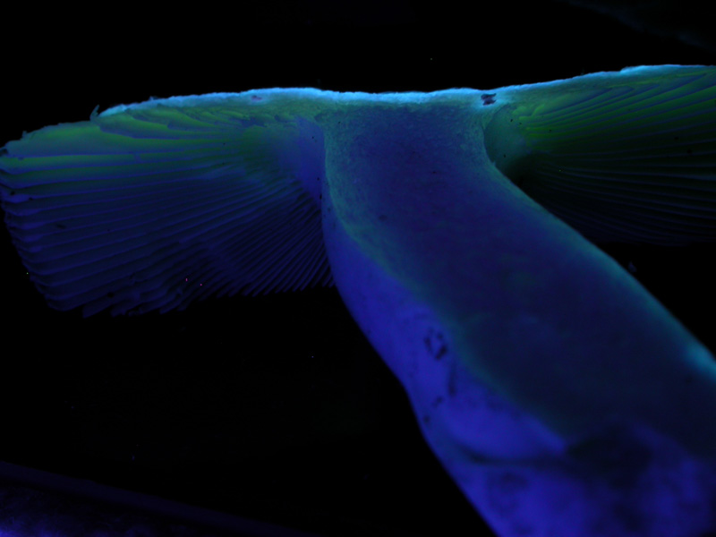 ich habe gestern Russula aurora bestimmt und spaßeshalber mal unter UV-Licht gelegt. Das sieht ziemlich bunt aus!
