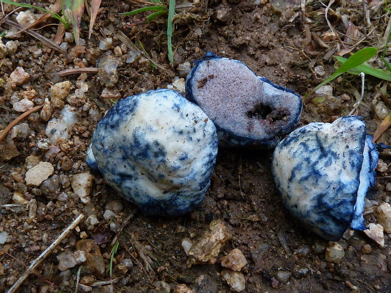 : ... und hier noch eine von Joshi gefundene Blaunuss Ja, der Joschi! Hat die Kugeln zufälligerweise mitgenommen, als ich parallel stundenlang diesen Pilz suchte. Am Auto angelangt, erschrag er und sagte, seine Kullern sind ja ganz blau! :O)
