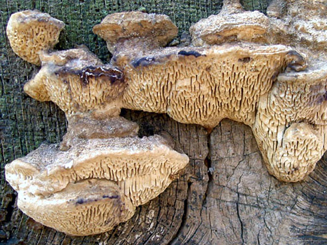 Diesen Pilz habe ich nun schon oft gesehen und kenne leider noch immer nicht seinen Namen. Dieser hier wuchs aus der Schnittfläche eines Buchenstammes, ich habe ihn aber auch schon auf anderen Hölzern beobachtet. Wer kann mir helfen?