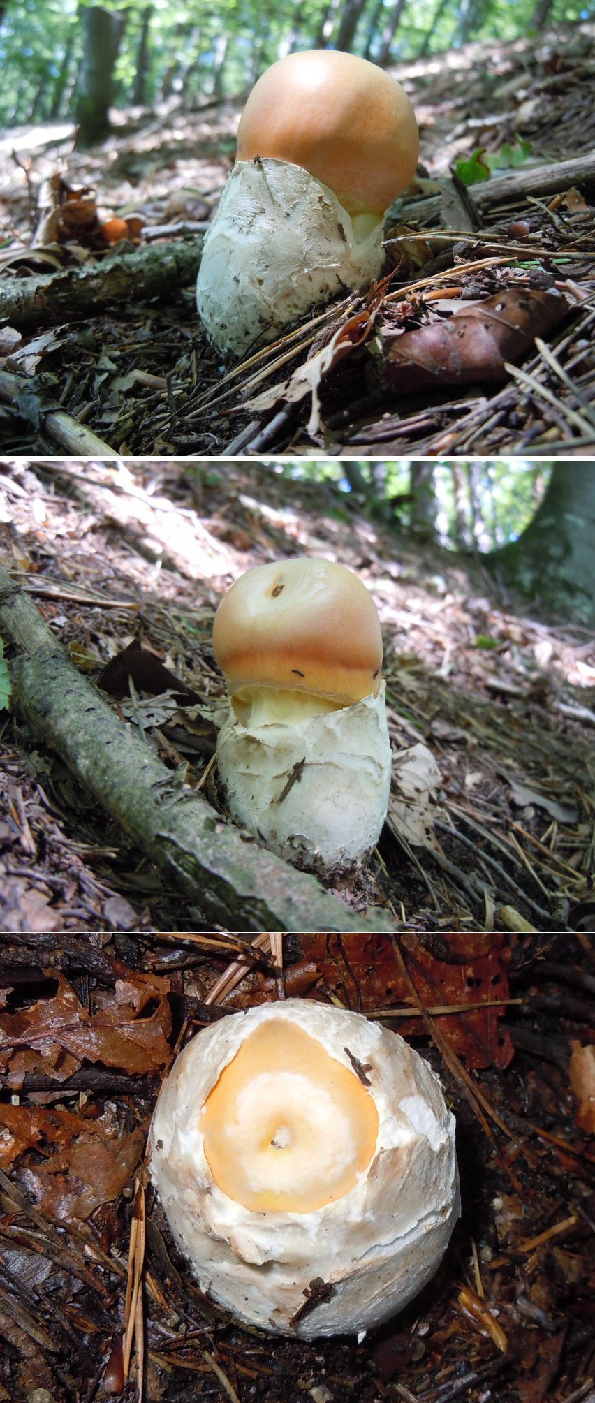 Hallo Pilzfans, das "Ei" entpuppt sich - ich glaube es wird ein schönes Exemplar (trotz Delle) - auf dem 2. Bild erkennt Ihr schon den gelben Stiel. Der Zeitunterschied ist 30 Stunden im Vergleich zum dritten Bild. Das Wetter ist sehr schön hier, um die 28 Grad am Tag und sehr feucht. Morgen gehe ich nochmals hin, dann werde ich wieder bei Basel sehen wie es den Pilzen so geht. Viele Grüsse aus der Südsteiermark sendet Euch Rainer