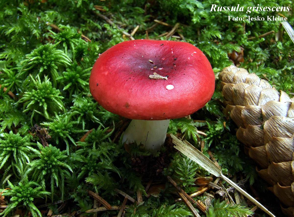 Dieser Einzelgänger im Torfmoos täuschte mit seinen sattroten Hutfarben einen echten Kirschroten Speitäubling (R. emetica) vor, aber bereits beim Eintrocknen zeigte sich der Makel dieser scharfen sächsischen Kirsche: Der Fruchtkörper verfärbte sich graubräunlich, und – wie übrigens Felix Hampe und ich inzwischen überzeugt sind – sind diese Verfärbungen bei den Speitäublingen oft ein verlässlicheres Merkmal zur Artabgrenzung als etwa die Septierung von Dermatozystiden, Sporenmaße oder die Zystidenverfärbung in Sulfovanillin. Im vorliegenden Fall waren jedoch auch die Sporen für die echte Kirsche zu klein und das Sporenornament zu niedrig. Es ist damit Russula grisescens.