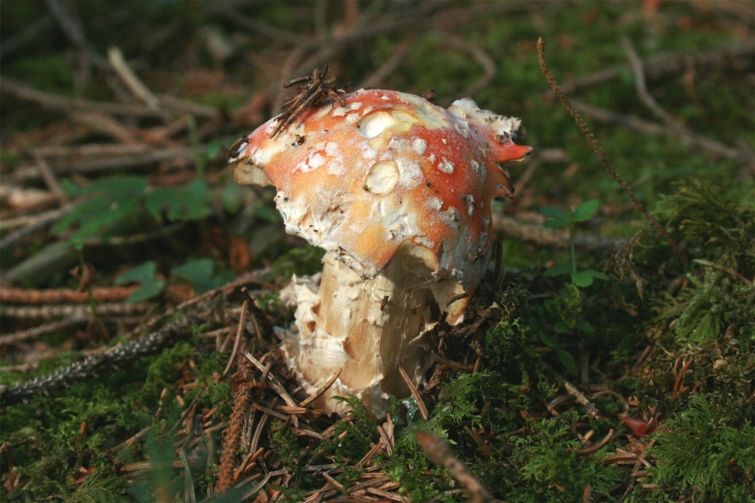 Hallo Ihr trockenheitsgeschädigten Pilzfreunde, hier ein bunter Farbklecks, der mir am Sonntag ins Auge sprang. Erst als ich bäuchlings vor ihm lag und die Kamera in Position brachte, wurde mir klar, wen ich da vor mir hatte. Eigentlich völlig simpel, aber es war der erste seiner Art in dieser Saison und dann in diesem Zustand... Grüße - Rika