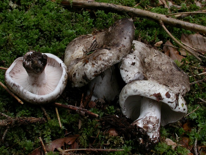 Bei diesem Schwärztäubling fiel uns schon im Feld der lachsrosa Schein in den Lamellen auf.