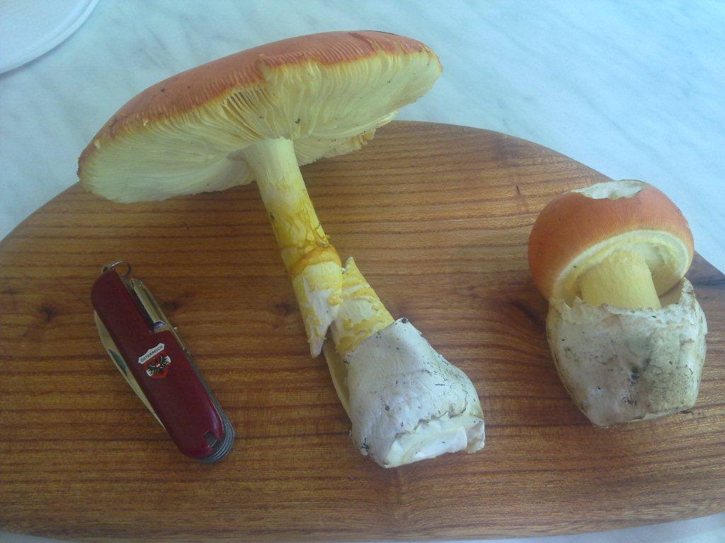 Es fand sich dann noch ein weiteres schönes erwachsenes Exemplar. Leider ist mir vor der Aufnahme der Stiel gebrochen. Es scheint sich um ein eher frühes Erscheinen des Pilzes zu handeln. Hauptzeit ist wahrscheinlich doch Spätsommer und Herbst. Verfeinern muss ich aber noch den kulinarischen Aspekt (Zubereitung hapert noch), damit der Geschmack wahrhaft kaiserlich wird.
