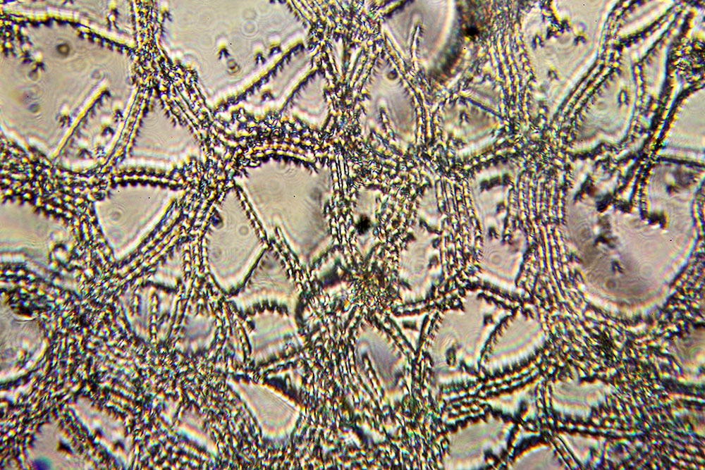 Unter dem Mikroskop mit 400facher Vergrößerung: