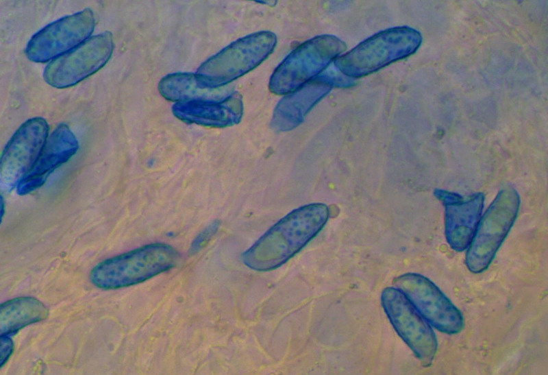 Sporen [95% • 12 • SAP • v • H2O(nat) ] = 10,3 - 11,6 - 12,9 x 3,6 - 4,4 - 5,1 µm