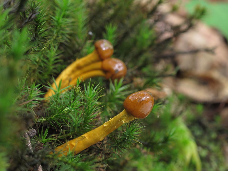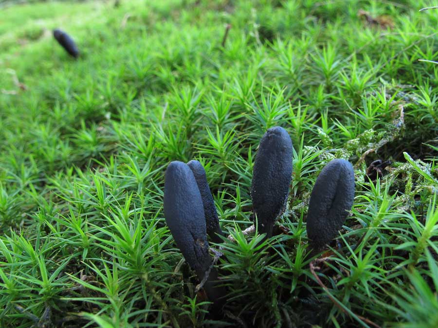 In den Moospolstern sehr häufig zu sehen, die Zungenkernkeule Elaphocordyceps ophioglossoides An anderer Stelle noch ein Verwandter: