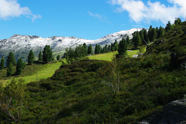 Servus, ja, auch ich war im Zillertal dabei. Zu Hause gab es da noch fast gar nichts, im Zillertal gab es genug Schwammerl. Aber nicht nur deshalb hat sich der Ausflug gelohnt. Auch die Stimmung in der Hütte war einfach pfundig! Am letzten Tag wollte ich unbedingt noch Mykorrhizapilze der Zwergstrauchheiden über 2000 m finden - verbunden mit einer zünftigen Bergwanderung. So begab ich mich nach Hochfügen und marschierte den Schotterweg hoch bis dahin, wo es am Vortag noch geschneit hatte. Die Mykorrhizapilze wollten (noch) nicht. Die Mühen des Aufstiegs wurden aber belohnt mit einem herrlichen Bergpanorama und einem sehr schönen Saftlings-Aspekt, der mich doch ein wenig entschädigt hat. Gruß Helmut
