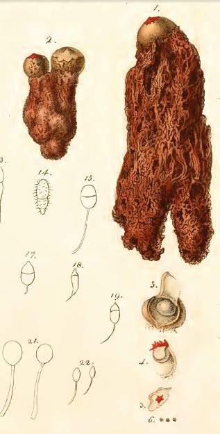 das könnte der hier sein (Anhang), den Schweinitz als Mitremyces lutescens 1822 abgebildet hat (1-6). Wie der jetzt wohl heißen mag? Calostoma vielleicht...