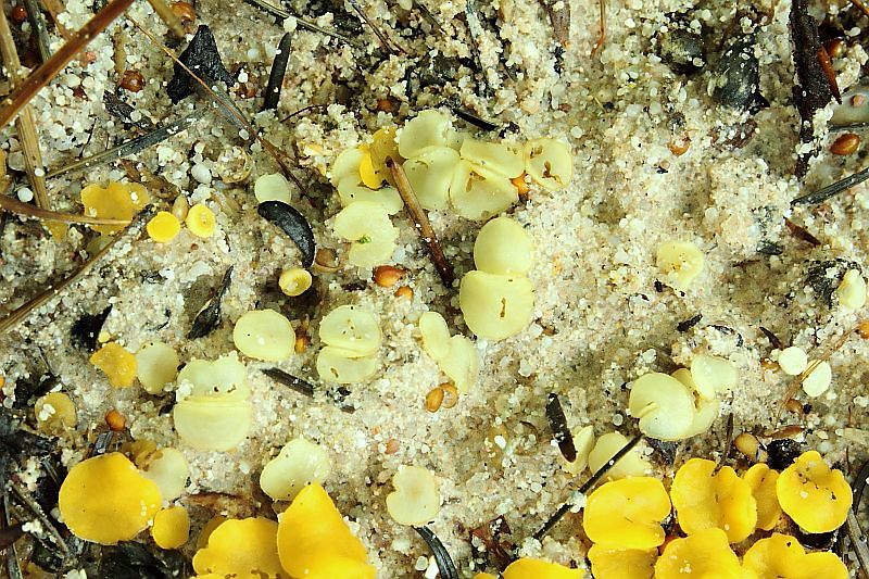 unter ähnlichen Fundumständen ist mir Cheil. theleb. auch schon begegnet, auf in den Wald gekippter Streu aus einer Vogelvoliere. Und überrascht hat es mich auch nicht sonderlich, daß die fast weißen Apothezien auch diese Art waren. Bei Cheilymenia kommt das ja ab und zu mal vor. Iodophanus carneus war auf dem selben Substrat auch zu finden und die anderen von Euch gezeigten Arten würde ich auch so nennen wie meine Vorgänger. Diese Cheilymenia ist nicht an Dung gebunden, in unserem Sammelgebiet kommt sie gerne auf Kirrungen mit Getreide vor, auf verrottetem Stallhasenmist wurde sie schon gefunden, auf sich zersetzender Wellpappe, auf Erde in einer Intensivweide. Bei manchen Kollektionen erkennt man die Behaarung kaum, bei Cheil. crucipila muß man mitunter auch lange nach den "Kreuzhaaren" suchen und mit Cheil. stercorea agg. gibt es noch eine "kreuzhaarige" Art, die streng an Dung gebunden ist und wahrscheinlich nur ab der montanen Stufe vorkommt. Also ab in den Hochharz, dort hatte ich sie schon vor Jahren.