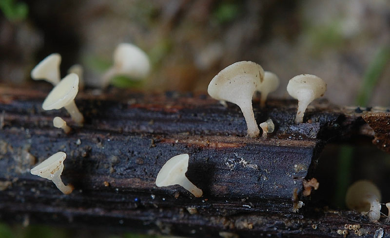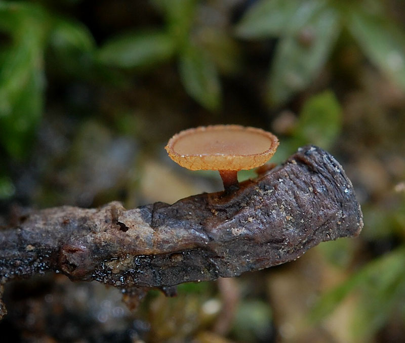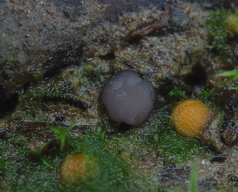 Auf durchnässten Knien ging die Rutschpartie dann weiter durch die Waldwegfurche. Es roch noch etwas nach Holz, das im vorherigen Jahr hier gerückt wurde. Keine zehn Zentimeter und dann wieder gelbe Punkte, es wird langweilig. Aber dann, das trübe Auge erspäht gut versteckt auf dem grauen Ton, einige wenige violettgraue Pusteln. Ich ahnte und hoffte es schon. Hartmut Schubert hatte mir vor Kurzem aus dem Harz einen Ascomyceten geschickt. Ein Harzer Déjà-vu inmitten einer westmecklenburgischen Waldwegfurche! Das heimische Mikroskop konnte die Vermutung bestätigen Ombrophila limosella und das fast vor der Haustüre! Zumindest für Mecklenburg-Vorpommern eine neue Art. Den wollte ich schon immer selbst finden. Zugesandtes Material durfte ich schon daheim berühren, aber selbst erlegt ist doch was ganz anderes. Oder liebe Pilzfreunde?