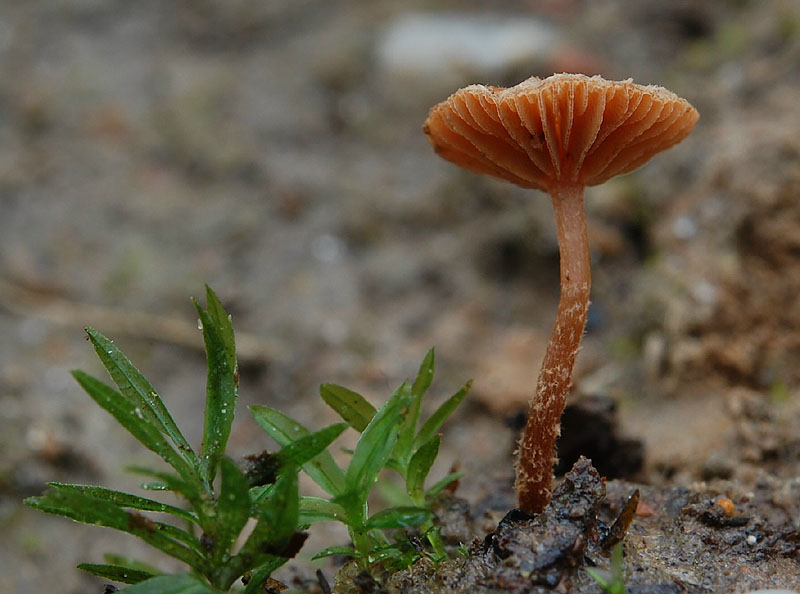Fast schon im Gehen steht da noch einer. Hut, Stiel und Lamellen; so einen hatten wir heute ja noch gar nicht. Mit seinen 8 mm Hutdurchmesser gehört unser Flockige Trompetenschnitzling eher zu den Winzlingen. Typisch sind die lange, besonders in der Randzone des Hutes vorhandenen Velumreste. An derartigen Standorten wohnen auch ähnliche Arten der Gattungen Flammulaster und Galerina. Die Sporen von Tubaria conspersa waren mandelförmig, glatt und 7- 7,5 x 4,5- 5 µm. Dicht drängelten sich die 35- 50 x 6- 8,5 µm großen Zystiden auf der Lamellenschneide. Sie waren flaschenförmig und meist kopfig angeschwollen. Nach LUDWIG (2001) kann ihre Form aber sehr vielgestaltig sein. Ich hoffe unser Exkurs in den „Grand Canyon“ ist eine kleine Anregung mal dorthin zu schauen wo wir Spuren hinterlassen.