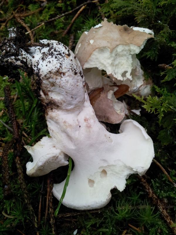 Hallo, passend zum Thema habe ich gestern ebenfalls einen Porling gefunden, dieses Mal ein Bodenbewohner, im sauren und moosigen Fichtenwald (älterer Bestand) auf ca. 400 m ü NN.