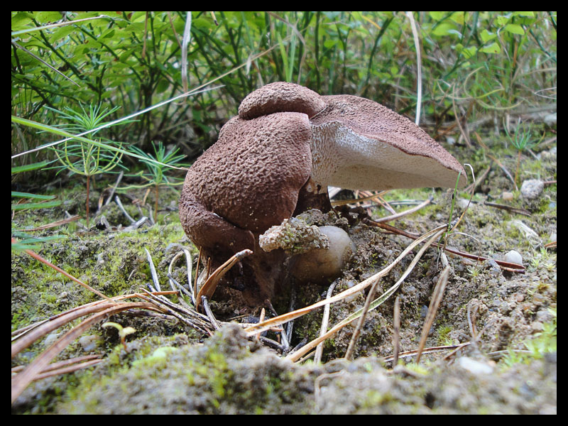 gefunden wurde. Vor einem Jahr wurde dieser Pilz bereits bei einer Exkursion im gleichen Wald gefunden aber an anderer Stelle. Die Teilnehmer gingen an diesen Pilz achtlos vorbei und auch mich hat er getäuscht. Beim ersten Blick war es für mich ein Hohlfußröhrling aber dann nach dem abschneiden war es sofort klar.