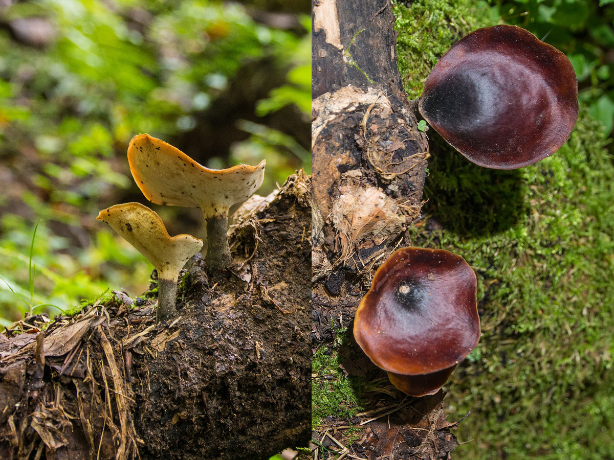 Kann das ein Ganoderma sein ? Was das für ein verrotendes stück Holz war, war nicht mehr erkennbar. Das Ganze in einem Auwald innerhalb eines großen Mischwaldareals. Die Fruchtkörper waren über 10 cm hoch, ledrig, oberseits völlig glatt, glänzend.