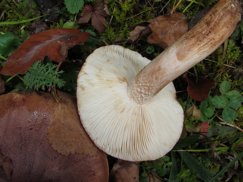 Habe noch einmal versucht nahe ran zu gehen. Die Lamellen sind teilweise abgesetzt. Ich hoffe, du kannst das am Bild erkennen. Am Standort sind Zitterpappeln auch da. Kiefern und Fichten selten und Buche sehr häufig.