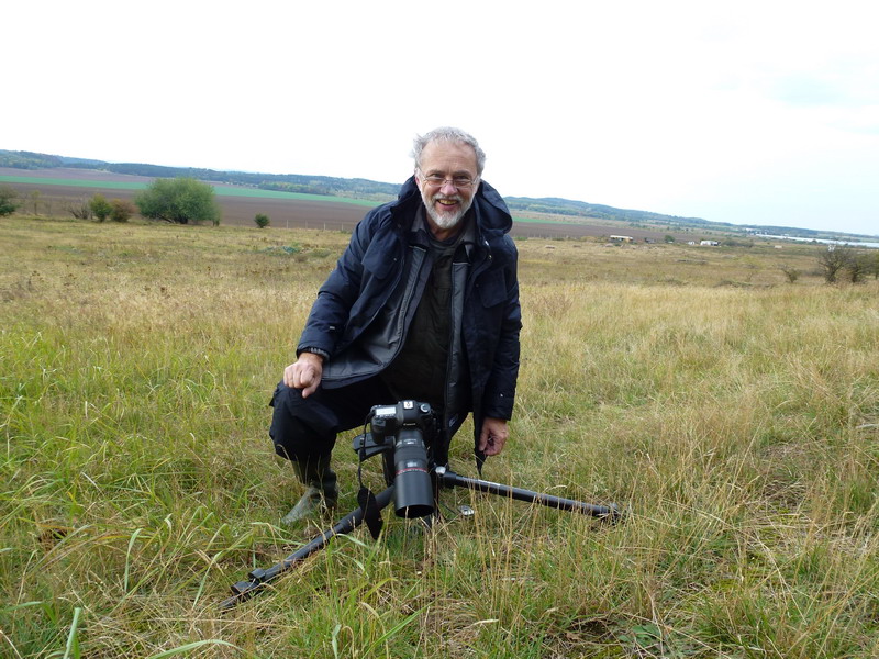 Heidepilz beim fotographieren von Tulostoma pulchellum und Geastrum campestre, auf dem Gebiet Hammelsberg bei Harsleben.Im Hintergrund sieht man schon den neu errichteten Solorpark, der immer größer wird und bedrohlich heranrückt.